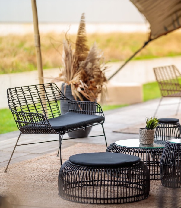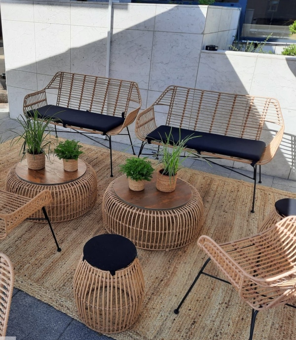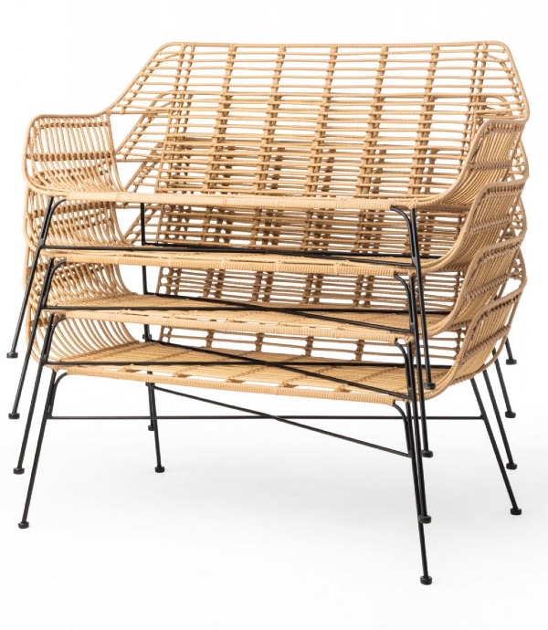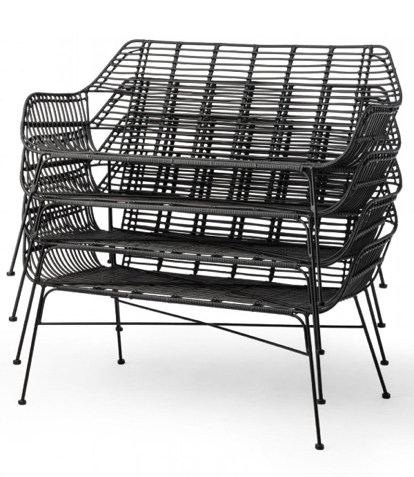 Enige op PE Rattan gebaseerde bank die stapelbaar is. Gemakkelijk te stapelen tot 10 stuks hoog. Voor binnen- en buitengebruik. Staal van hoge kwaliteit met glad mat zwart oppervlak. Gegalvaniseerd voor poedercoating (anti-roest). Poten beschermd met kunststof kapjes.