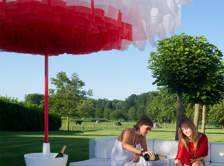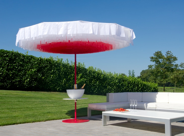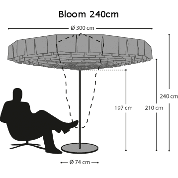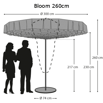 De parasol Bloom is geïnspireerd op de zomer. De stoffen ‘bloemblaadjes’ op de parasol creëren een heerlijke overdekking op uw terras. De parasol Bloom is verkrijgbaar in twee verschillende hoogtes en u kiest uit verschillende kleurencombinaties.